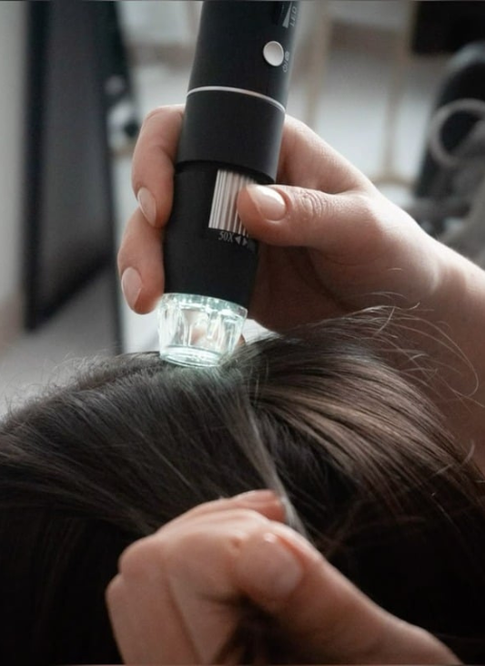 Analizar de forma detallada el estado del pelo y del cuero cabelludo mediante tecnología médica y valoración profesional.